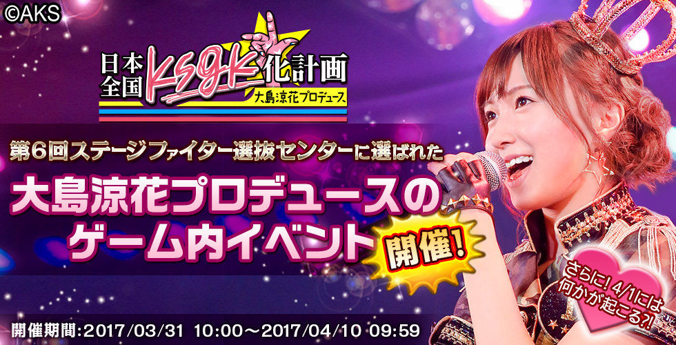3月31日10:00開催予定の「大島涼花プロデュースイベント開催告知」が対象となります。