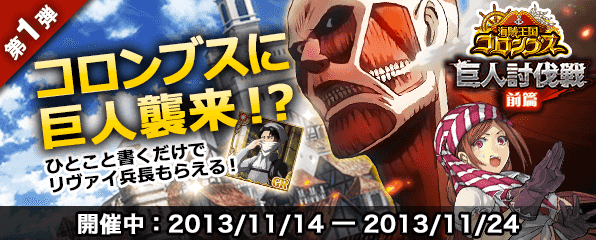 あの「進撃の巨人」と「GREE」の人気タイトルがコラボキャンペーンを開始!期間限定のイベントやアイテムから目が離せない!