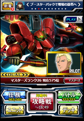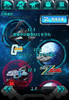 モビルスーツ等のユニットを入手・強化し、オリジナル部隊を編成しながら「任務」と「バトル」を繰り広げよう★